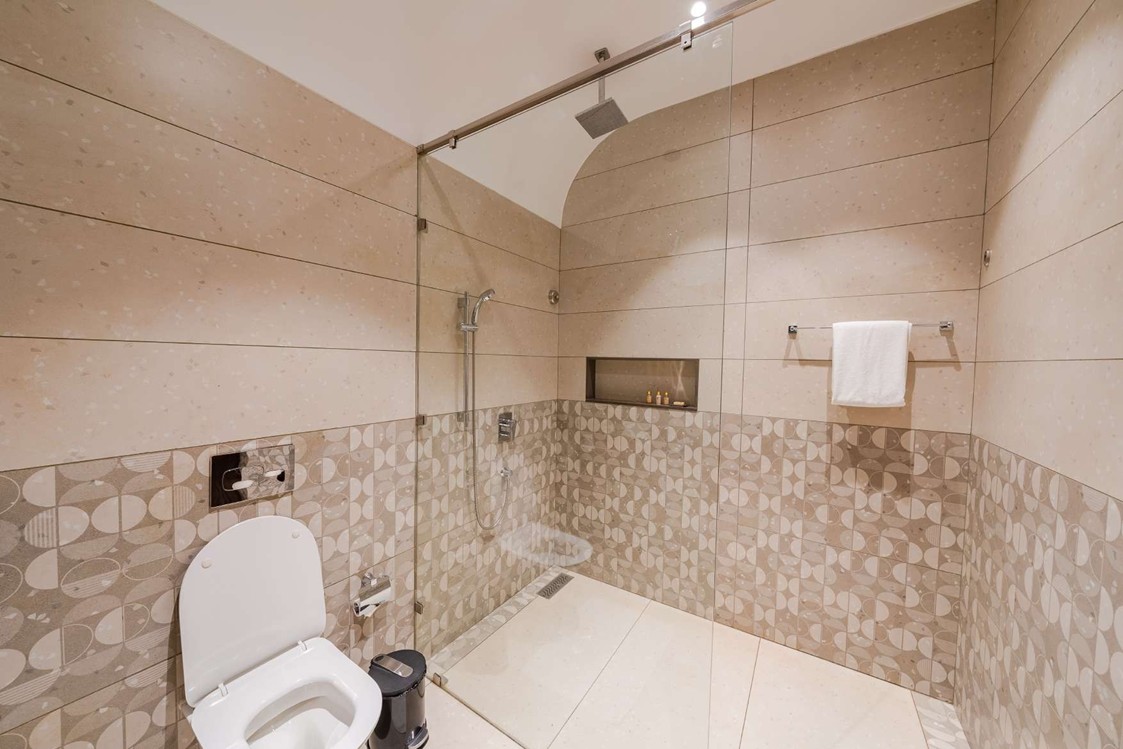 Concept - A luxurious villa stay with a luxurious living room with dining area, a huge private lawn and a private pool with 2 master bedrooms and a walk in closet space size of total area of 4500 sq.ft